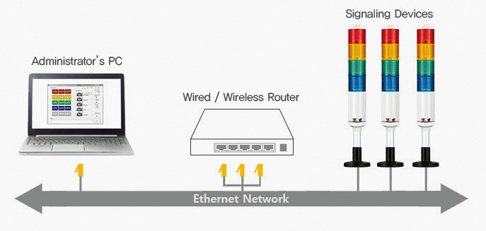 - LED signal tower light controlled by PC application program though the network